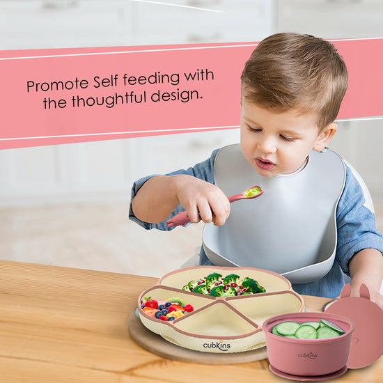 Designed with Indian parents in mind, the Cubkins Plate + Bowl + Early Feeding Bendable Spoon Bundle contains a 4 compartments silicone Plate with suction, a Bowl with a lid and an early feeding bendable spoon suited for typical Indian meals. Made with premium & high-quality silicone, the Cubkins Plate + Bowl + Early Feeding Bendable Spoon combo is Safe, Easy & Clean and Use and designed keeping young children in mind.